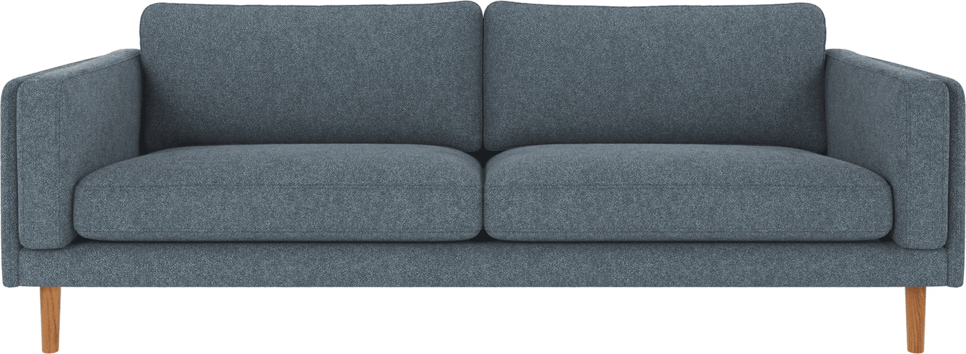 3-personers sofa Rowico Braden i blå Bobby 15 polyester med lakerede egetræsben B216xD87xH78 cm