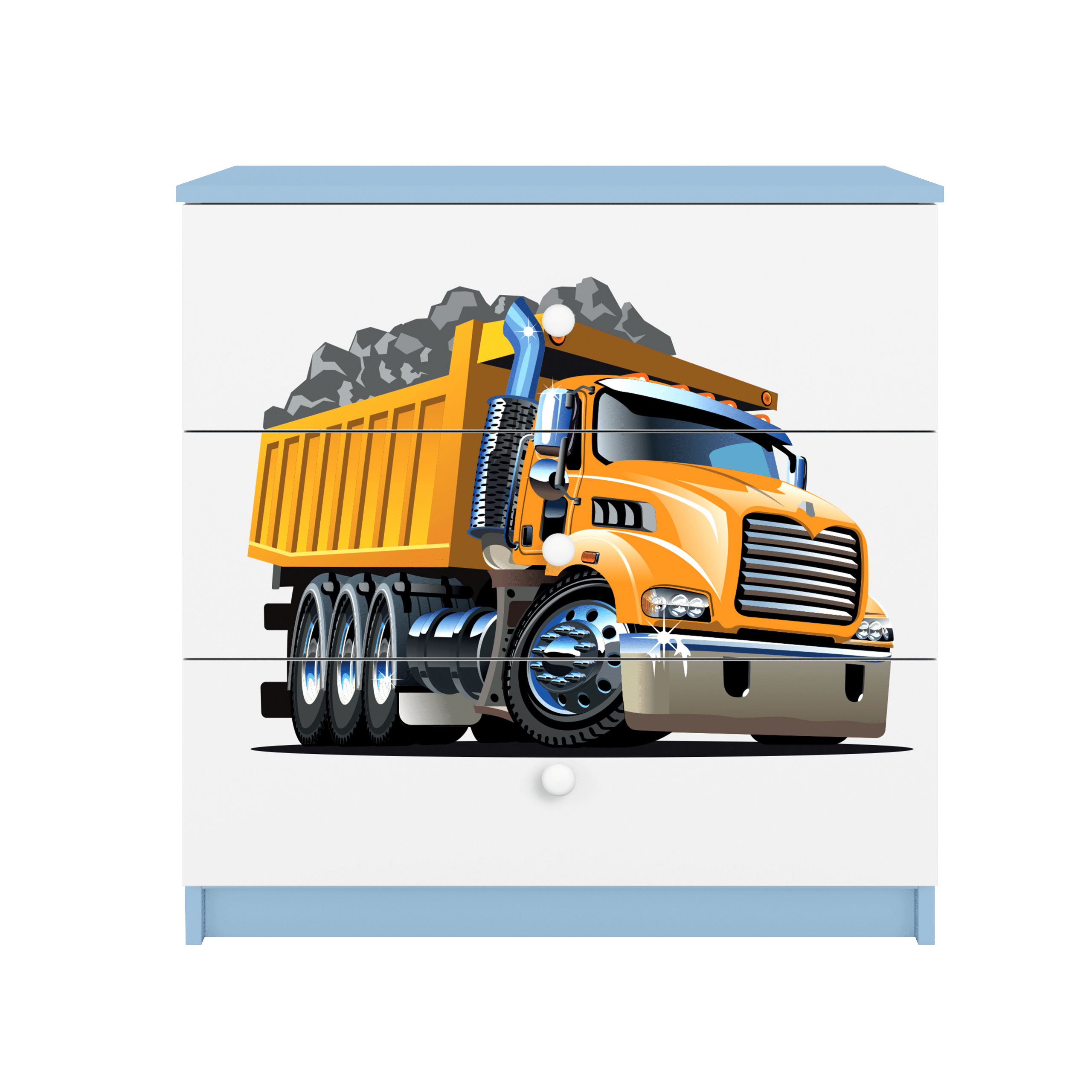 Babydreams børnekommode med lastbil, m. 3 skuffer – hvid og blå laminat