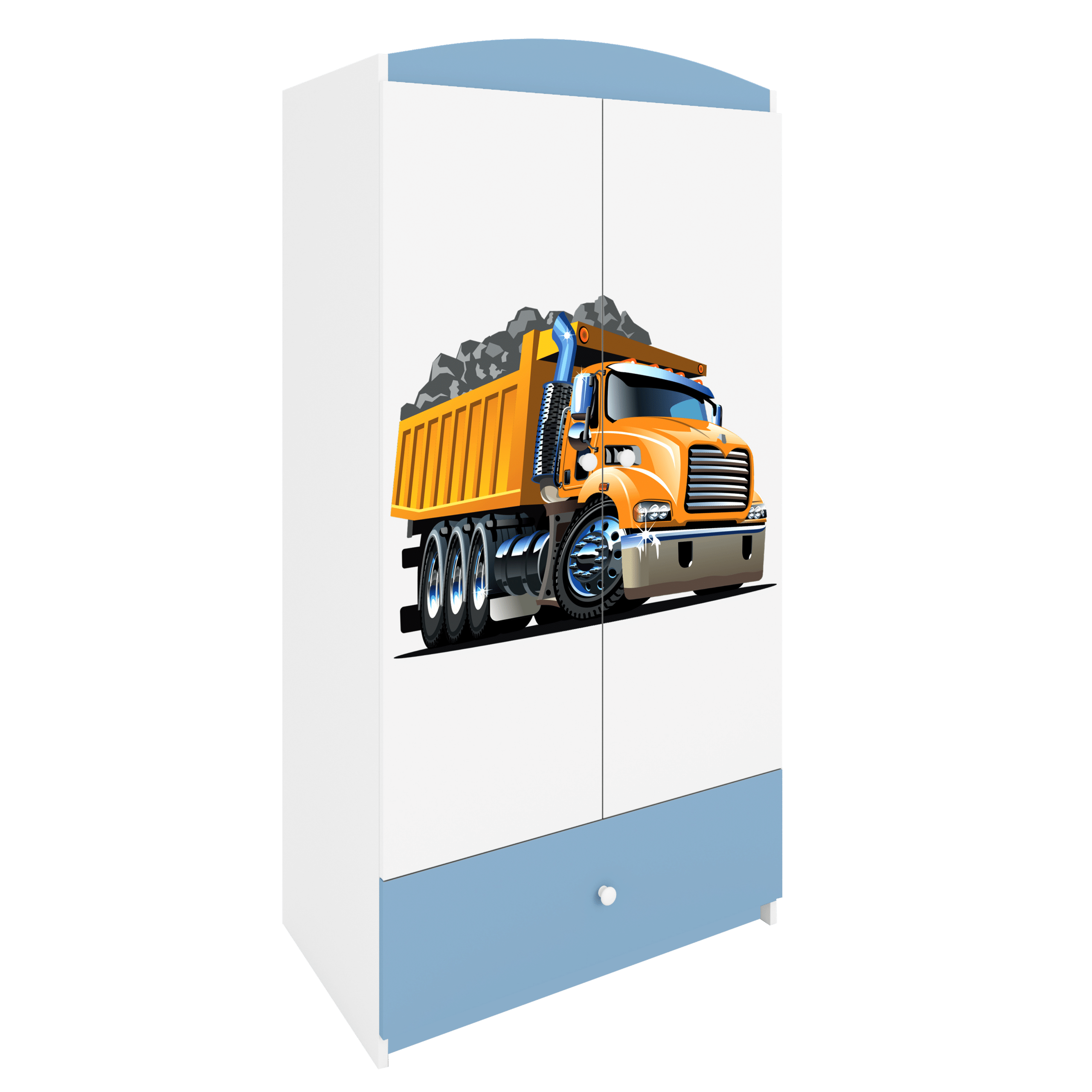 Babydreams garderobeskab til børn med lastbil, m. 2 låger, 1 skuffe – hvid og blå laminat