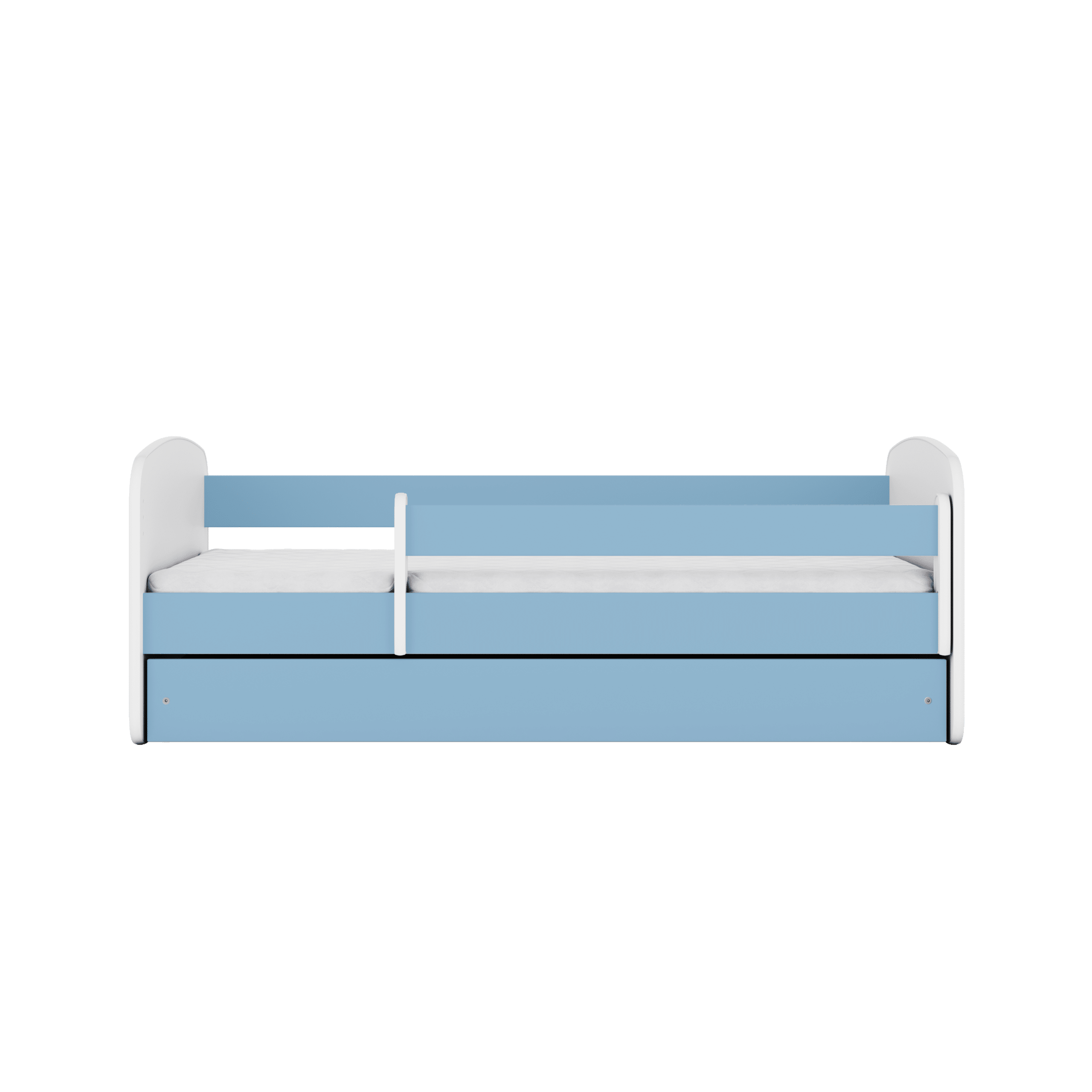 Denne Babydreams juniorseng vil helt bestemt kunne glæde de fleste børn. Børnesengen er lavet i hvid og blå lamineret spånplade. Den er designet med en flytbar sengehest, en madras og en todelt skuffe til opbevaring af dyner, puder og legetøj.Af hensyn ti
