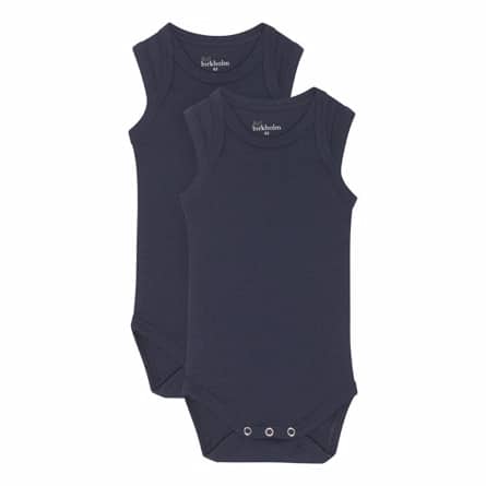 I denne pakke får du 2 ensfarvede navy blå bodystockings fra det danske mærke Birkholm. Begge bodyer er uden ærmer, har de smarte foldeskuldre samt trykknapper imellem benene.