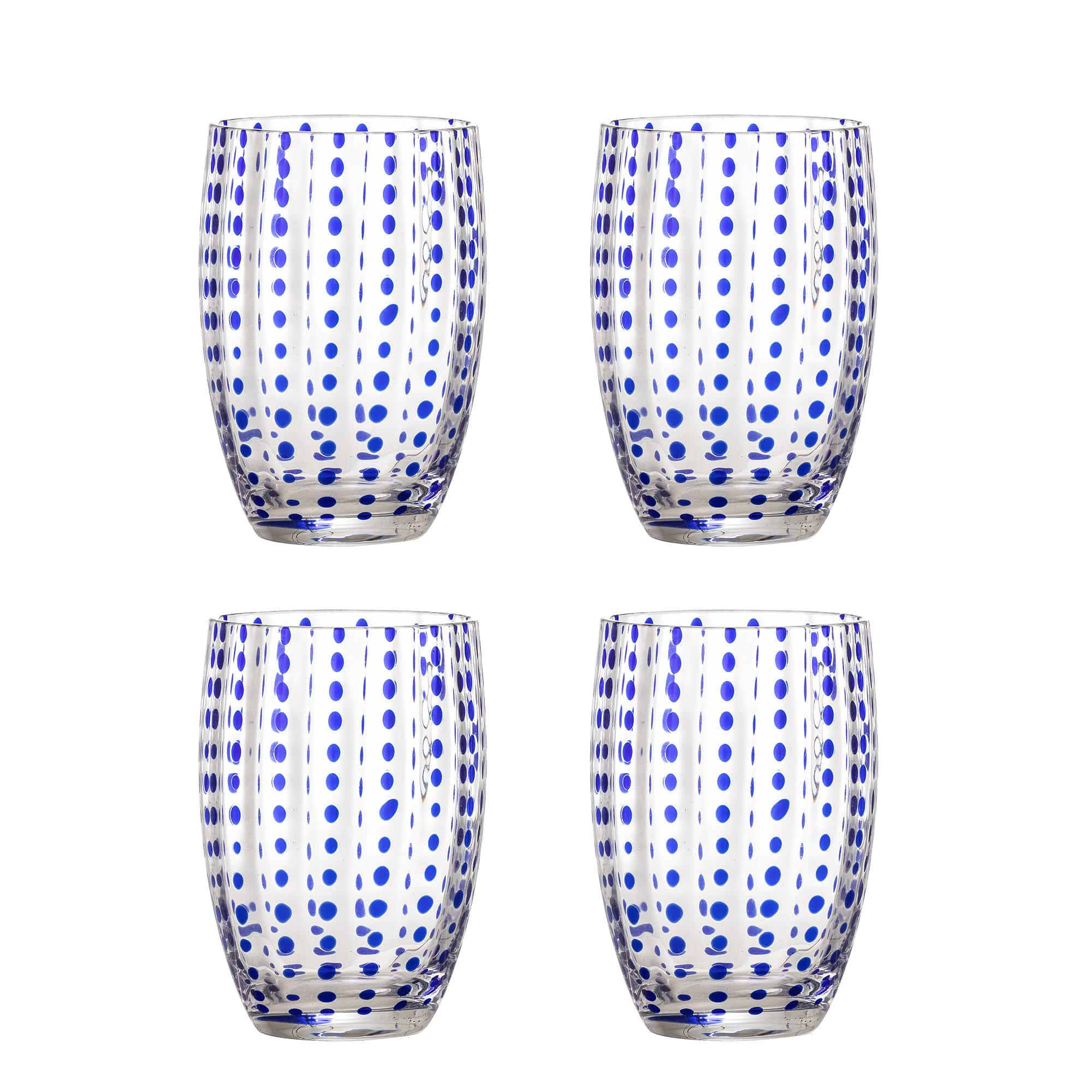 Brinley Drikkeglasset fra Bloomingville er fremstillet af mundblæst glas med prikkede linjer i blå nuancer. Glassene kommer i et sæt af 4. Små uregelmæssigheder kan forekomme, hvilket sikrer, at hvert glas er unikt.