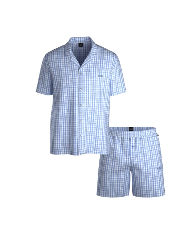 BOSS Cooper Pyjamassæt i blå til herre er den perfekte kombination af stil og komfort. Dette sæt består af en kortærmet skjorte og shorts, begge lavet af blødt og åndbart stof, der sikrer en behagelig søvnoplevelse eller afslapning derhjemme. Den blå farv