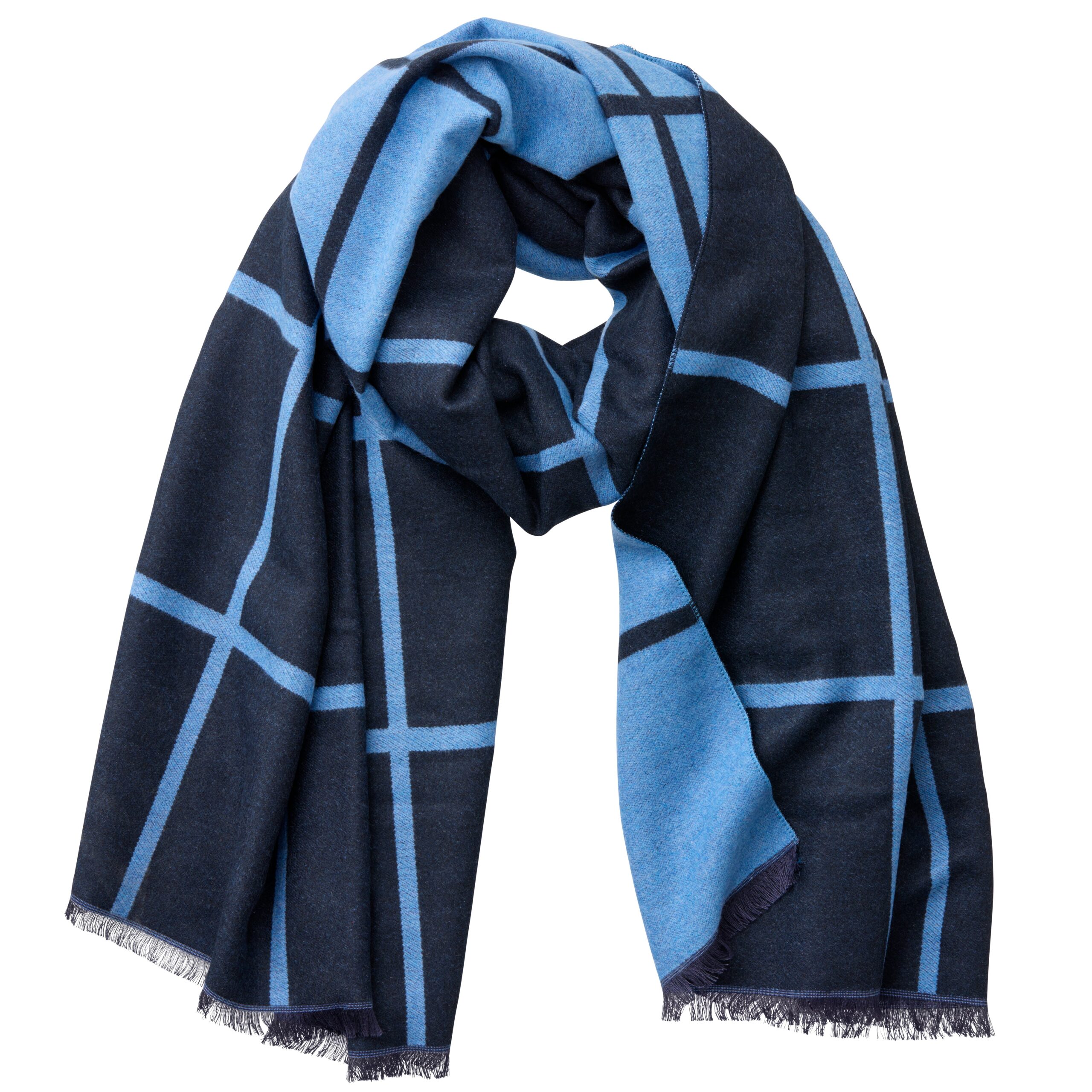 Iøjnefaldende tørklæde fra Bahne Studio i mørkeblå og kongeblå tern. Tørklædet måler 190 x 70 cm og er fremstillet af 80% viskose og 20% bomuld.