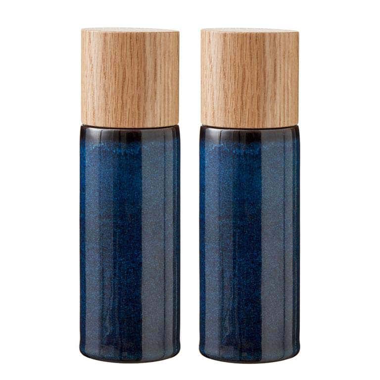 Salt- og peberkværnsæt i blankglaseret stentøj med top i egetræ. Den smukke farve passer til de øvrige produkter i BITZ farverige stentøjsserie, hvor den reaktive glasur giver hvert enkelt produkt sit helt unikke spil.