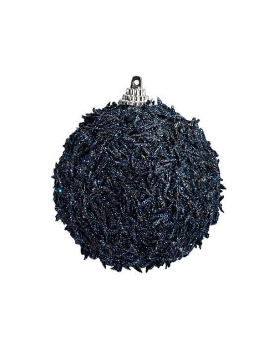 Giv dit juletræ et elegant og moderne touch med denne smukke mørkeblå julekugle. Julekuglens overflade er dækket af strålende glimmer, der reflekterer lys på en stemningsfuld måde, hvilket gør den til et stilrent indslag i din julepyntning. Perfekt til at skabe en luksuriøs og sofistikeret følelse i hjemmet i julen.
