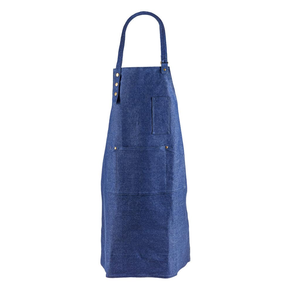 Denne vare udgår af sortiment og sælges til udsolgt. >Lækkert denim forklæde fra Gorms. Forklædet har en justerbar strop, der går rundt om nakken og det har to forlommer, en stor ved maven og en mindre ved brystet.