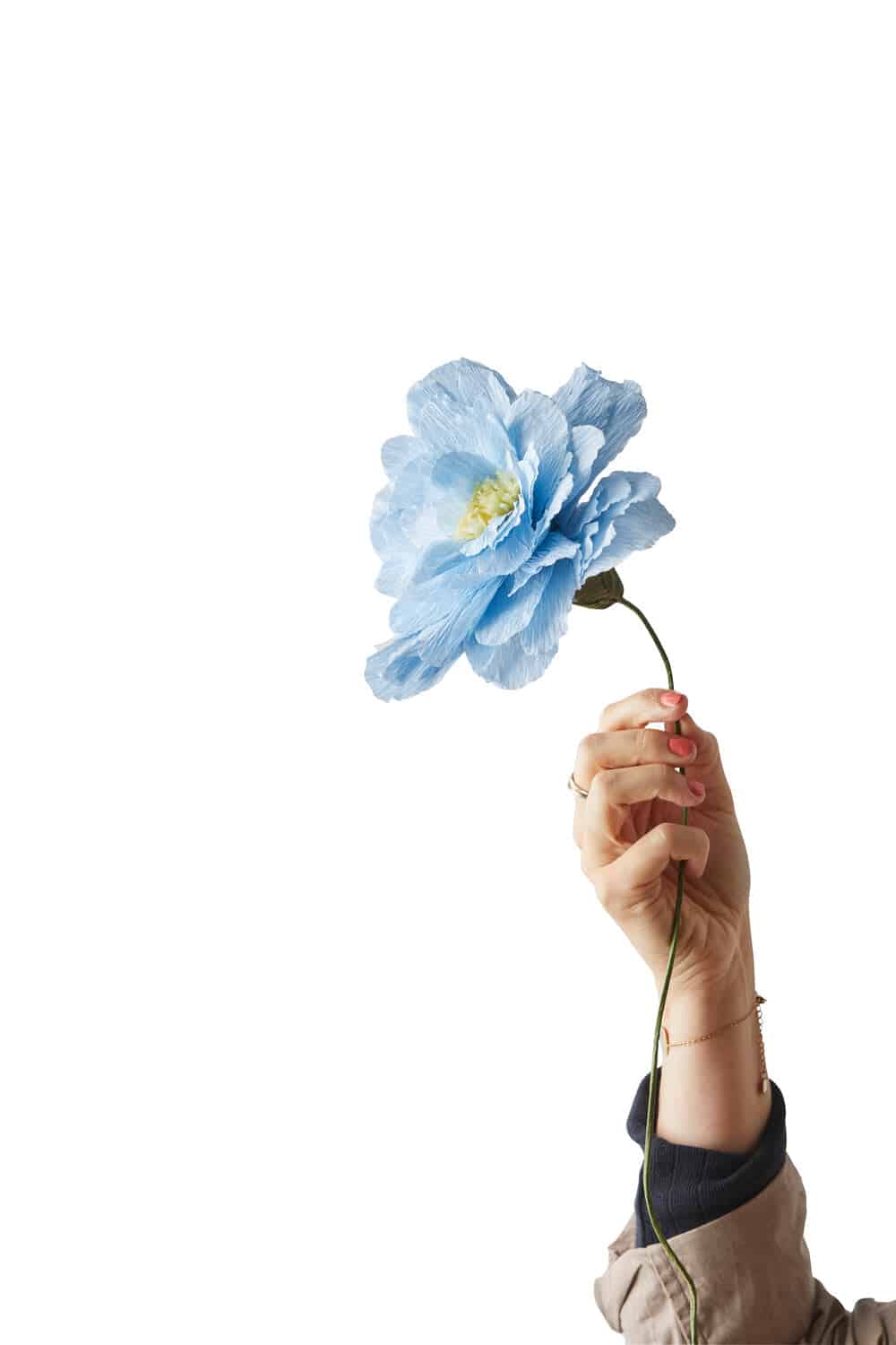 Grand Peony papirblomst er lavet i samarbejde med papirkunstneren Kristina fra Labdecor. Grand Peony er inspireret af Silkepæonen ‘Bowl of Beautyâ, som er en af Kristinas personlige favoritter fra hendes have. Blomsten er lavet af gennemfarvet crep