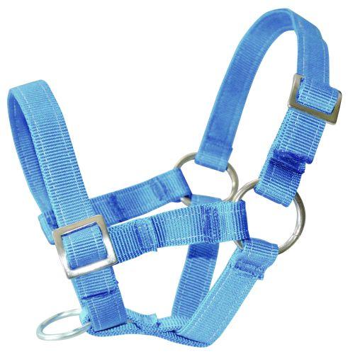 Grime til får. Fremstillet af 20 mm nylon webbing. Med spænde og ring. Justerbar ved spænder. Farve blå. SB-pose med 1 stk.