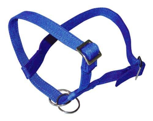 Grime til lam. Fremstillet af 20 mm nylon webbing. Med spænde og ring. Justerbar ved spænder. Farve blå. SB-pose med 1 stk.