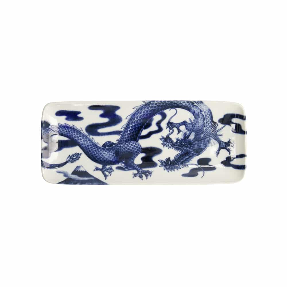 Dette fad fra Tokyo Design Studio er designet med et blåt drage print. Fadet måler 28,5 x 14 x 2,5 cm.