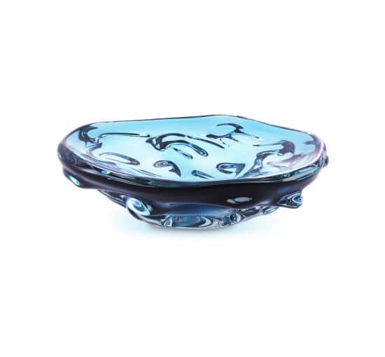 Den lille Kane-skål har en interessant organisk form og en dybblå farve og er fremstillet af håndblæst glas. Det, der gør dette kunstneriske hjemmetilbehør ekstraordinært, er dets skulpturelle udseende og det faktum, at hver skål er helt unik, da det er et håndlavet produkt.