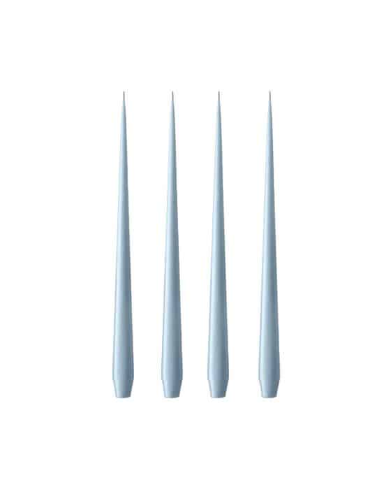 Smukke, hånddyppede og matte lys fra Ester & Erik, fremstillet af 100 % ren, duftfri paraffin med væge i 100 % bomuld. Den koniske, let afrundede fod gør, at de passer til de fleste lysestager, og den spidse top giver et elegant udtryk.Lysene er selvslukkende og slukker cirka 2–3 cm før bunden. Brændetid cirka 8 timer. For bedst mulig forbrænding anbefales det at holde vægen kort og undgå træk samt direkte sollys. Sælges i sæt á 4.