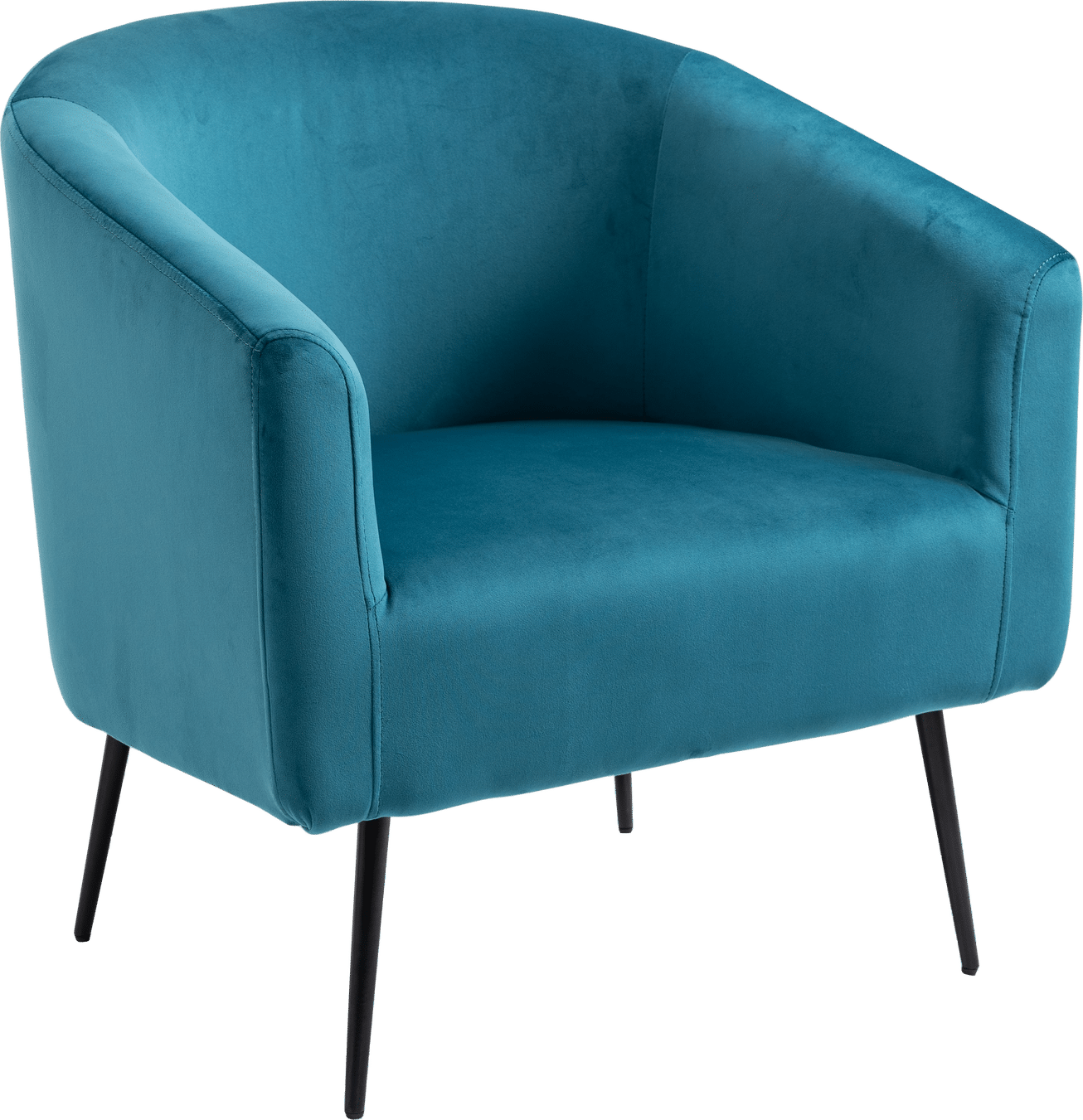 Nordlys Furniture præsenterer Kiruna loungestolen i en smuk blå velour, der med sine bløde kurver og slanke, sorte metalben tilføjer et strejf af luksus og lethed til dit hjem. Den generøse ryglænshøjde på 76 cm og en bredde på 75 cm giver en indbydende s
