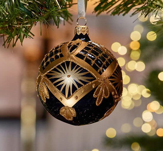 En elegant blå julekugle med et smukt guldmønster, der pynter på juletræet. Skab en fortryllende stemning i dit hjem og pynt dit juletræ med eksklusive julekugler fra Lux. Kollektionen Lux er en unik serie af håndlavede glaskugler i forskellige farver og former med smukke, detaljerede mønstre. En klassisk dekoration til dit hjem, der skaber en ægte julestemning.