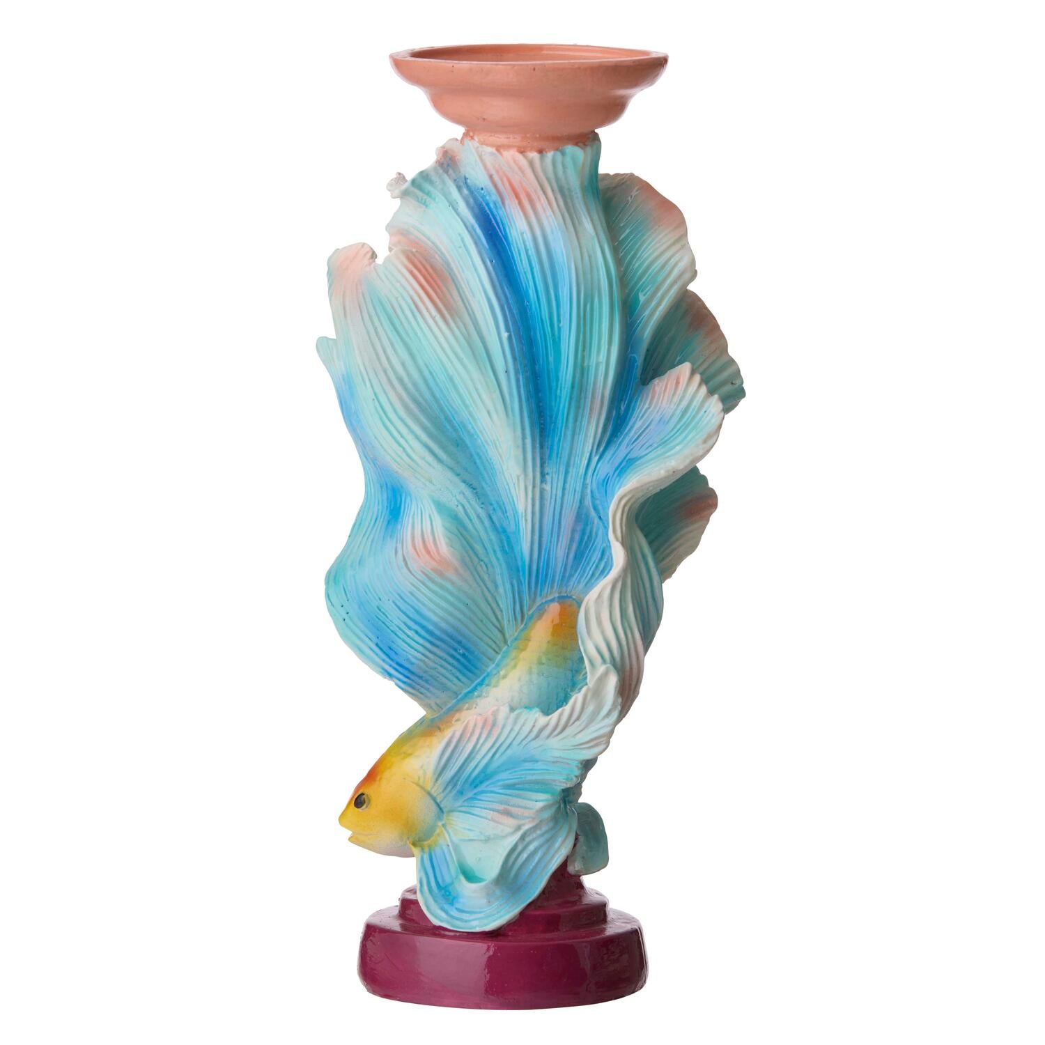 Stor lysestage med en slørhale på siden. Lyset placeres i enden af fiskens halefinde.