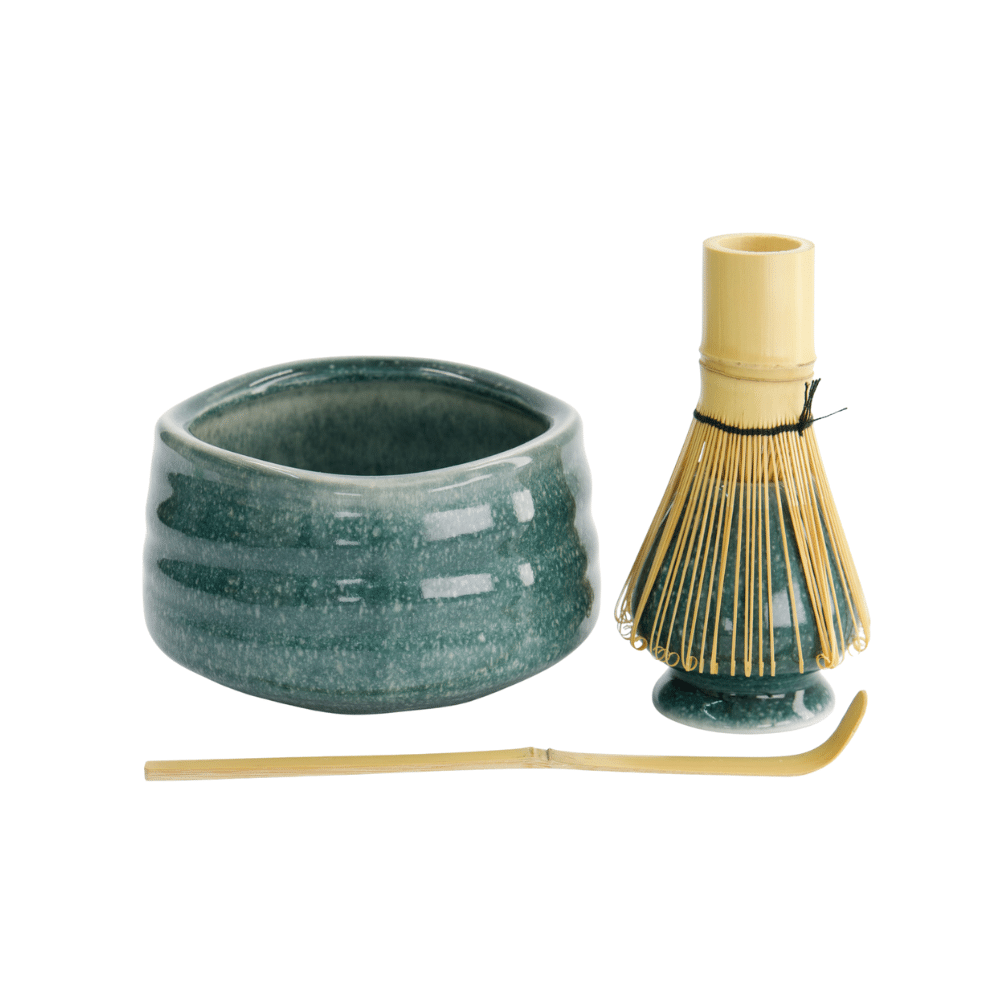 * Matcha-skål (Chawan): En elegant keramikskål med et unikt, håndlavet udtryk, perfekt til at piske