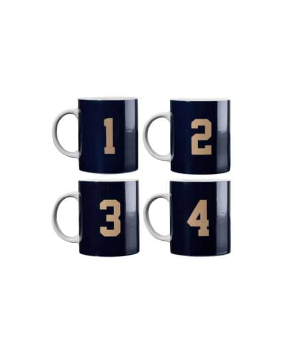 Elegant 4-pakke porcelænskrus i en dyb marineblå farve med et klassisk polo-inspireret tema. Hvert krus er nummereret fra 1 til 4 og har et klassisk Newport-emblem med et amerikansk flag på den modsatte side. Disse krus er perfekte til morgenkaffen eller eftermiddagsteen og tilføjer en stilfuld og sofistikeret følelse til ethvert køkken. Leveres i en eksklusiv gaveæske.