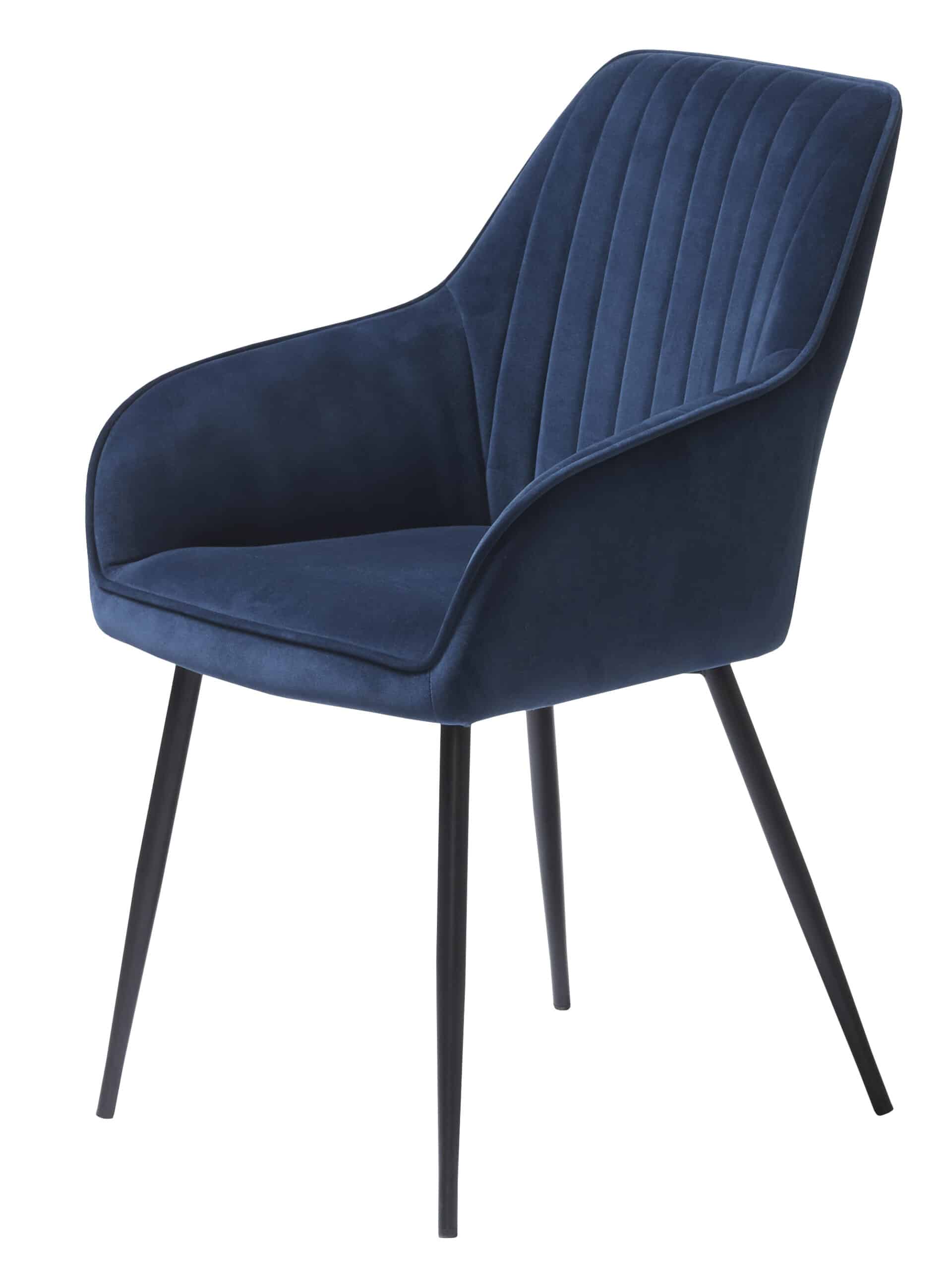Nolan spisebordsstol, stribe, m. armlæn – blå fløjl og sort stål