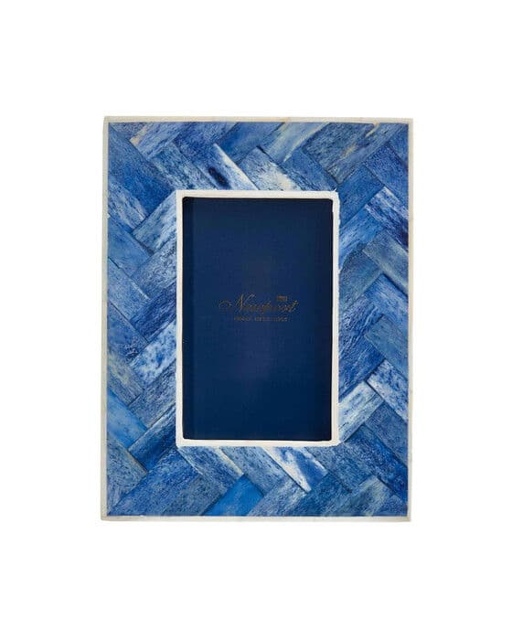 Pezoules er en flot fotoramme i naturmateriale. Med sit sildebensmønster i blå toner virker fotorammen Pezoules som hentet ud af en middelhavsdrøm.Santorini Frame Collection er vores serie af benrammer, som er resultatet af gedigent håndværk udformet i hånden af dygtige håndværkere. Kollektionen er inspireret af de fantastisk smukke omgivelser på den græske vulkanø Santorini. Fotorammen kan bruges stående eller liggende. Din ramme leveres i en flot gaveæske. Pezoules og rammen Armeni, som indgår i samme kollektion, har samme mønster. Pezoules fås i størrelse 10 x 15 cm og Armeni i størrelse 13 x 18 cm.
