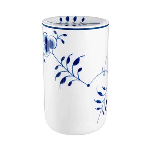 Blå Mega Riflet opbevaringskrukke – stor Denne opbevaringskrukke er både elegant og funktionel. Omkring låget er påført en silikonering, der sørger for, at det lukker tæt. Det smukke Blå Mega Riflede mønster giver den et enkelt udtryk, og porcelænskrukken