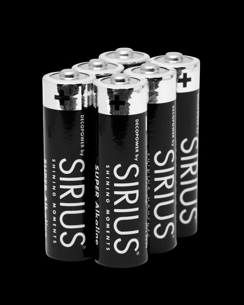 Pakke med 6 stk. Sirius Super Alkaline AA-batterier med en kapacitet på 2800 mAh. Batterierne er særdeles velegnede til produkter med LED-lys og kan benyttes i alle Sirius-produkter, der bruger batterier af typen AA/LR6.Brand: SiriusAntal: 6 stk