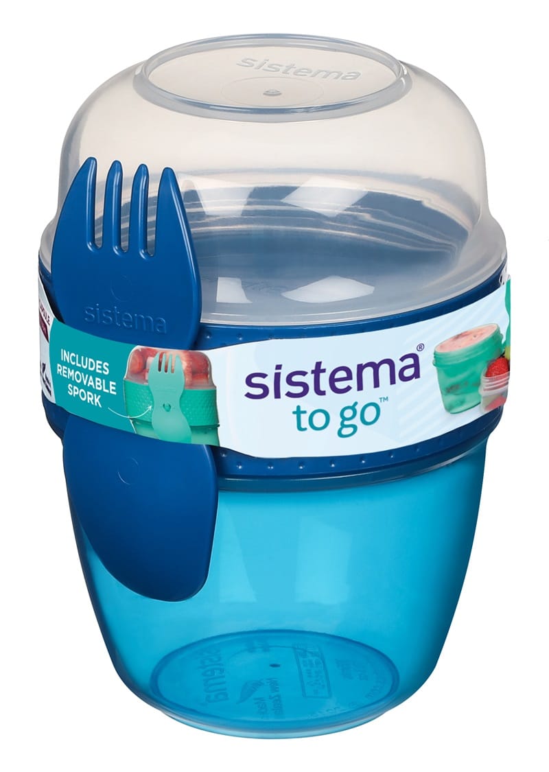 Sistema Snack Capsule To Go 515 ml mørke blå – To bøtter i én inkl ske/gaffel