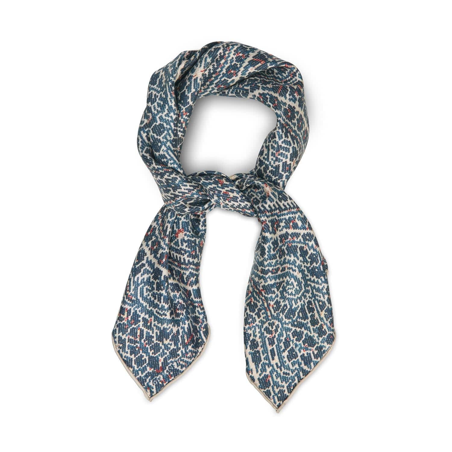 Dette tørklæde er fremstillet i Tapis Noir’s tykke og bløde silke. Printet er et indisk paisley mønster, som stammer fra 1800-tallet. Silken er blød med en mat overflade og kanterne er rullet og syet i hånden.