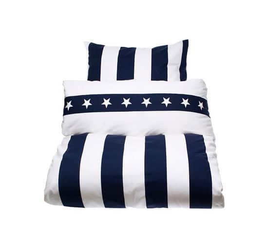Southampton Stripe sengesæt sæt er en af Newports absolutte bestsellere i blå og hvid. Skab hotelfølelse i din egen seng med Newports eksklusive sengetøj. Southampton stribet sengesæt er i et marine tema og er lavet af 100% OEKO-TEX bomuld. Sengesætet er stribet på den ene side og hvidt med stjernemønster på den anden side. Vælg mellem enkelt eller king size dynebetræk.4-del – Dynebetræk til enkeltdyne2 stk 140 x 200 cm + 2 stk 60 x 63 cm
