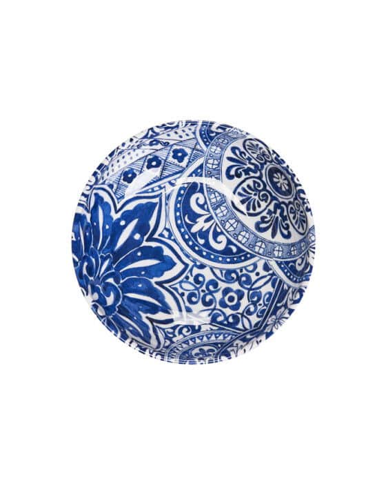St. Tropez-skålen har flotte blå og hvide nuancer i et dekorativt batikinspireret mønster, der leder tankerne hen på den franske riviera og de smukke strande i St. Tropez. Skålen er lavet af det populære og robuste materiale melamin, som gør skålen ideel til sommerens udeliv. Dæk op til picnic i haven, på stranden eller til en middag på terrassen og lad St. Tropez give en følelse af luksus til alle sommerens udendørs måltider.St. Tropez Collection er en serie af smukt dekorerede tallerkener, skåle, bakker og serveringsskåle, der er lavet af melamin og glas i akryl. Melamin er et materiale, der er slagbestandigt og modstandsdygtigt over for ridser og forbliver pænt og skinnende i lang tid. Vores melaminprodukter er velegnede til fødevareforbrug og tåler maskinopvask.