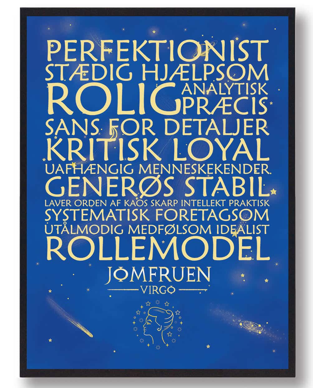 Stjernetegn Jomfruen blå plakat Tilføj ro og elegance til væggen med plakaten Stjernetegn Jomfruen blå plakat. Dette design hylder stjernetegnet Jomfruen (24. august 23. september) med en kølig blå nuance et ideelt valg for den analytiske, organisere
