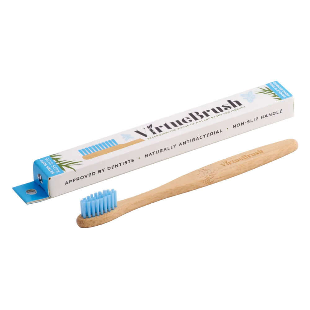 Skøn tandbørste til børn lavet i bambus og med ekstra bløde blå børster.